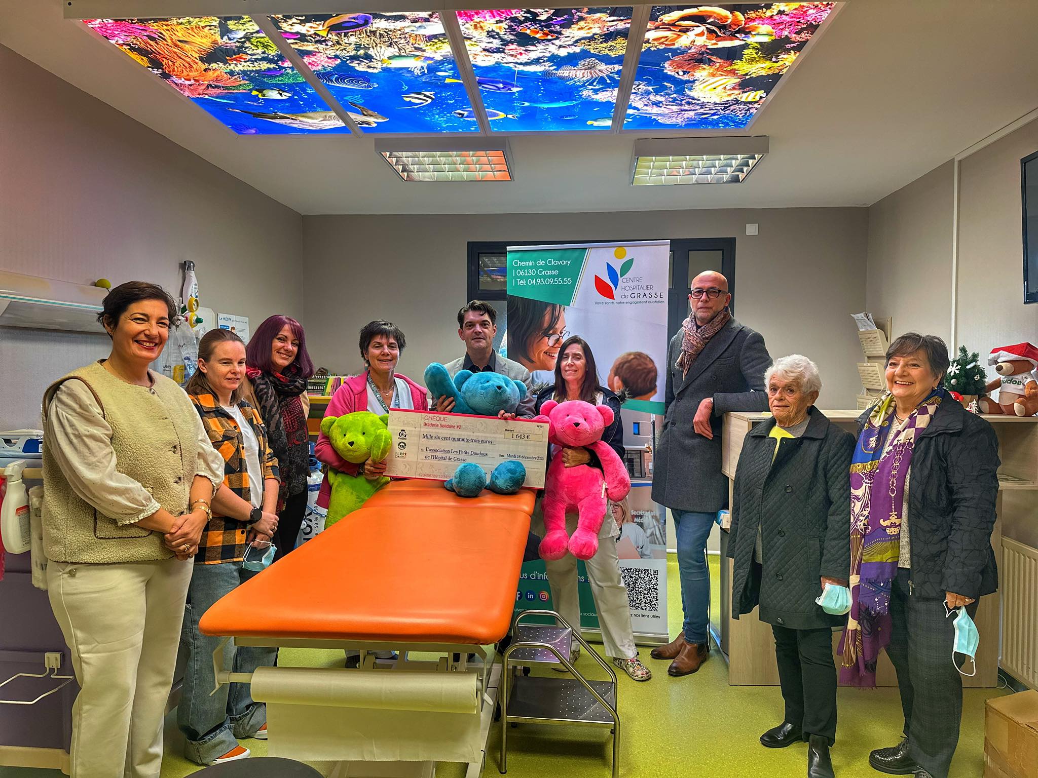 Ce matin, au Centre Hospitalier de Grasse, accompagné de mes élus, nous avons remis un chèque de 1 643 € au service de pédiatrie, à la suite de la 2ᵉ édition de la brader