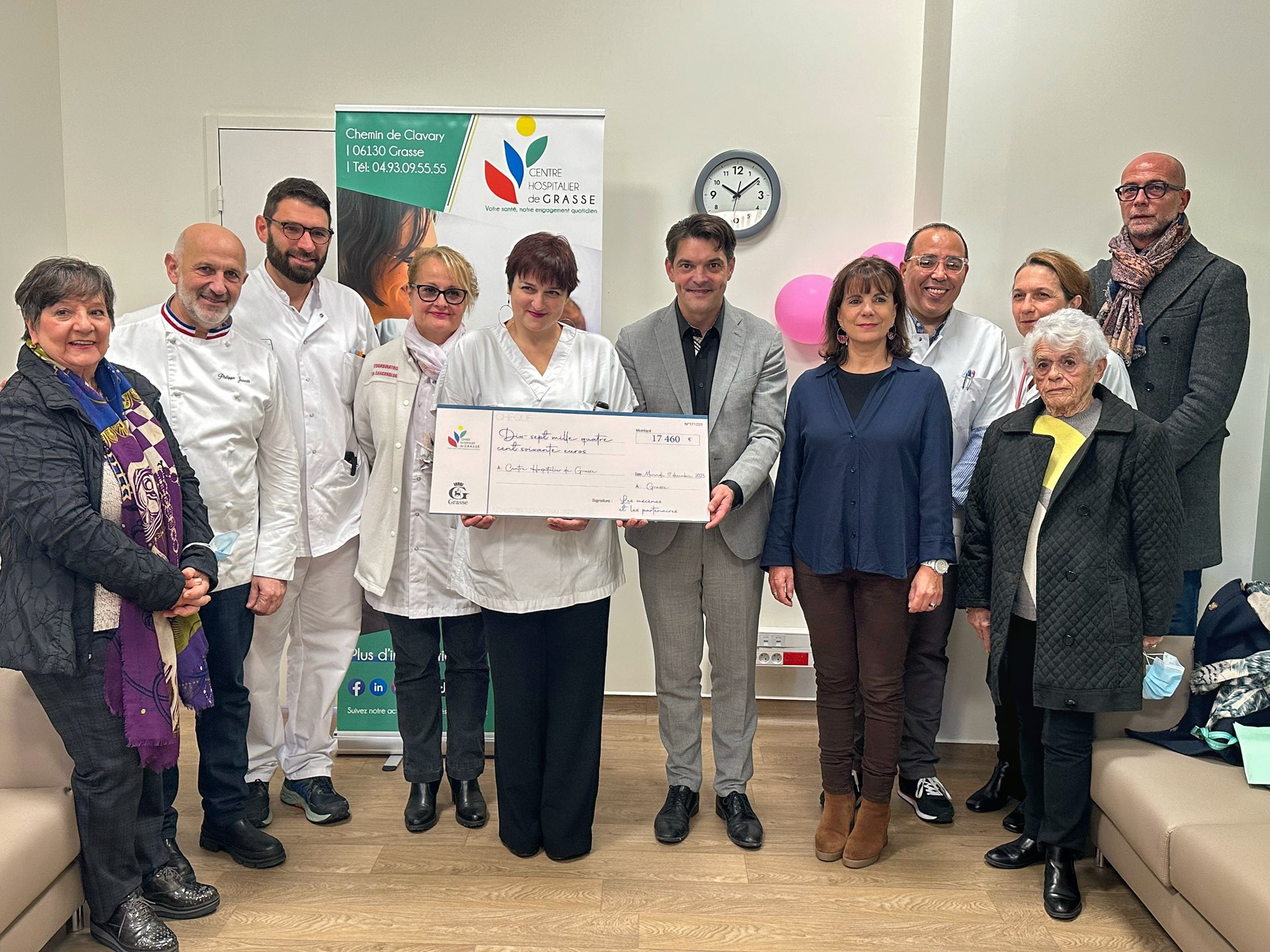 Toujours au Centre Hospitalier de Grasse, accompagné de mes élus, nous avons remis un chèque de 17 460 €, fruit du dîner caritatif organisé le 7 octobre dernier au Château