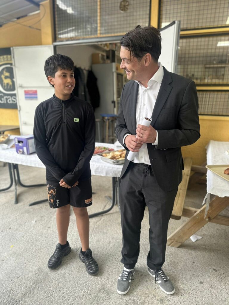 J’ai également été très heureux de rencontrer le jeune Taylor, licencié au Cercle bouliste Saint Joseph, récemment sacré champion départemental en doublette cadet à Blaussac. Une belle réussite qui fait la fierté du cercle et de tout notre territoire.