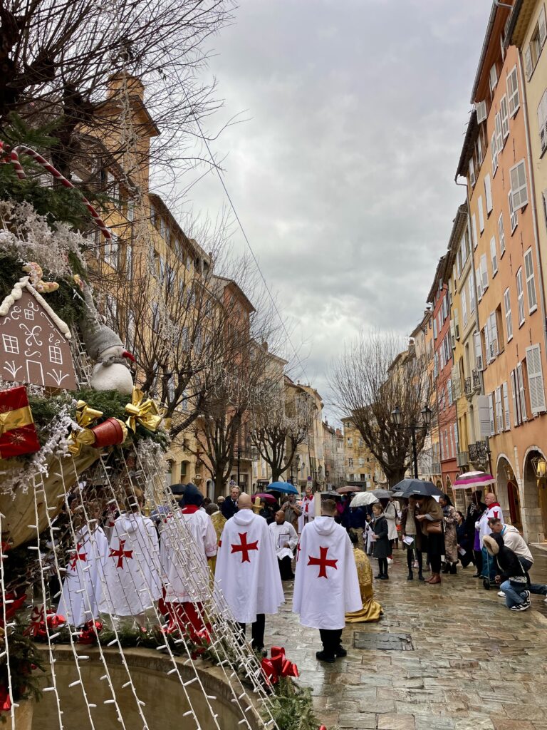 Ce matin, j’ai participé à la procession partie de la cathédrale Notre-Dame-du-Puy pour célébrer la Saint-Honorat, fêtée chaque année au plus près du 16 janvier, date à laquelle Grasse honore son saint patron.