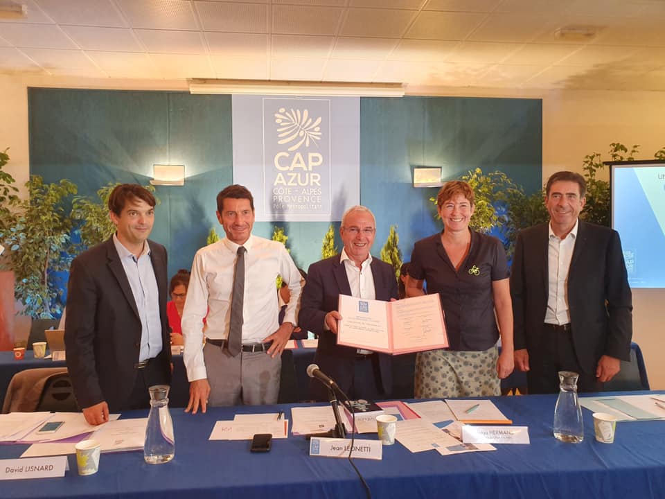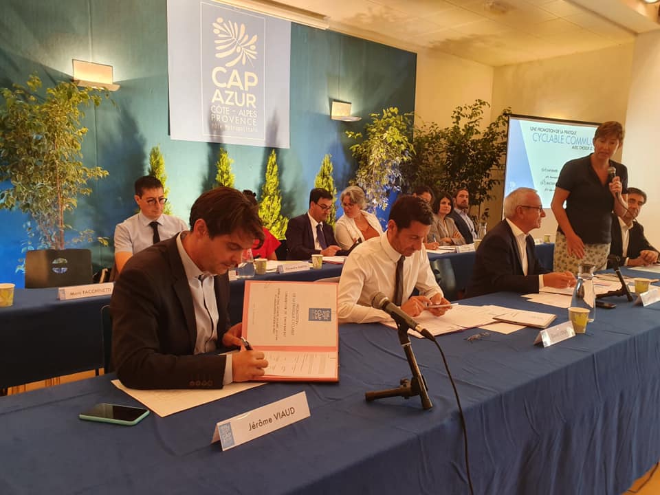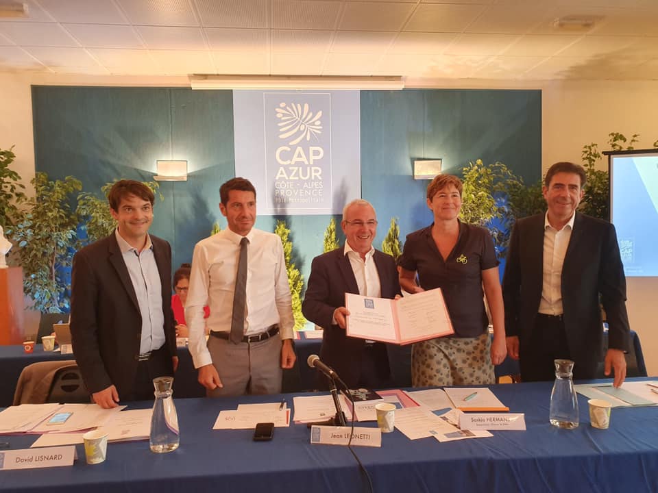 La seconde action présentée lors de ce Conseil CAPAZUR est la signature officielle de la convention de partenariat avec le Président de l’Association « Choisir Le Vélo ». Cela fait déjà depuis 2015 que le Pays de Grasse signe une convention de partenariat avec l’association avec une subvention de 10 000 € accordée chaque année . Ensemble, ont déjà été organisé des bourses aux vélos, une vélo-école et l’association participe bien sûr à la réflexion concernant les aménagements cyclables sur notre territoire en expérimentant des itinéraires. Je suis très heureux que ce partenariat s’étende aujourd’hui avec les 4 EPCIs du territoire CAPAZUR.