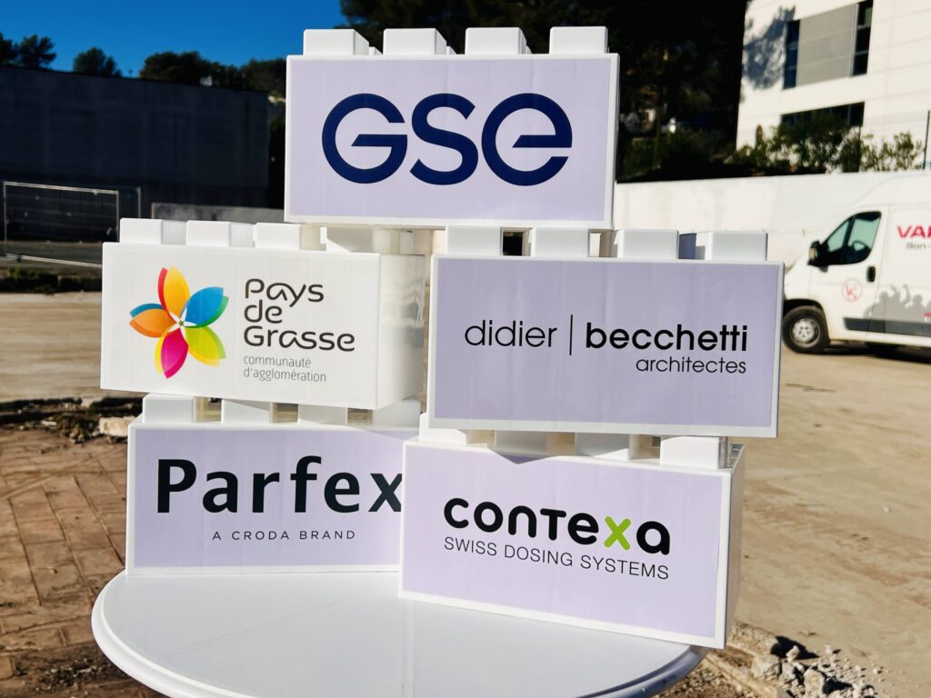À l’invitation de PARFEX, j’étais présent ce matin à la pose de la première pierre du futur bâtiment de production, sur son site historique du Parc d’Activités des Bois de Grasse.