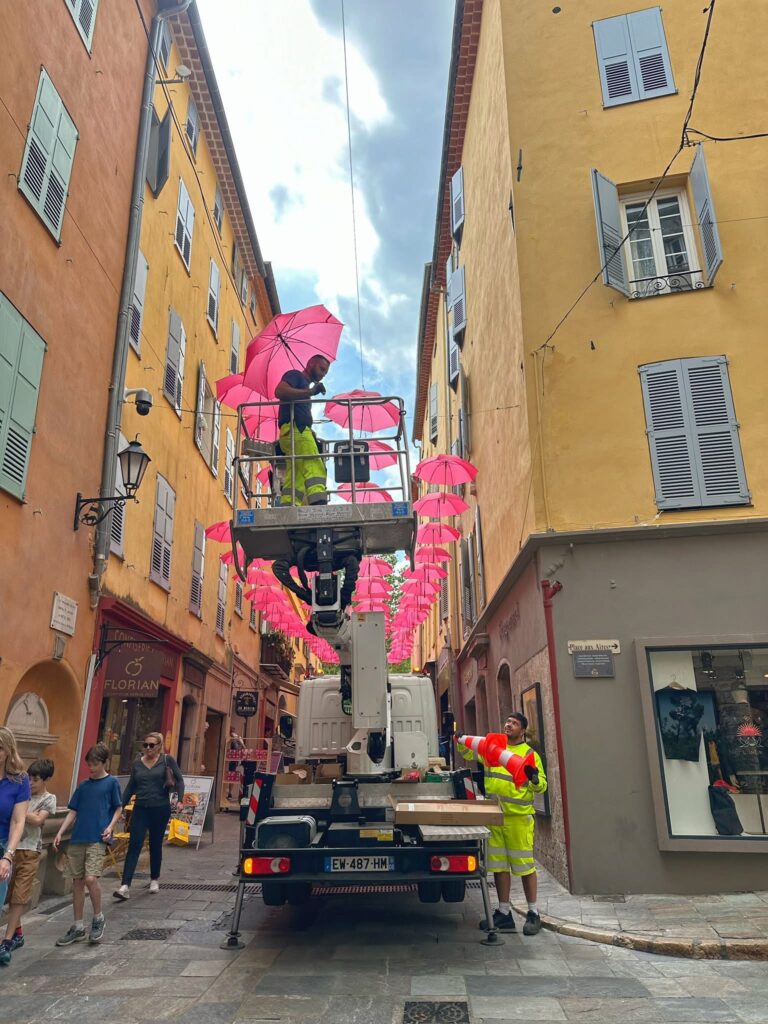 Le déploiement des célèbres parapluies roses se poursuit aujourd’hui dans la Rue Droite, après leur installation sur la Place Morel et la Place aux Aires. Il se poursuivra dans les jours à venir dans notre cœur de ville, pour s’achever entre la fin avril et le début du mois de mai.