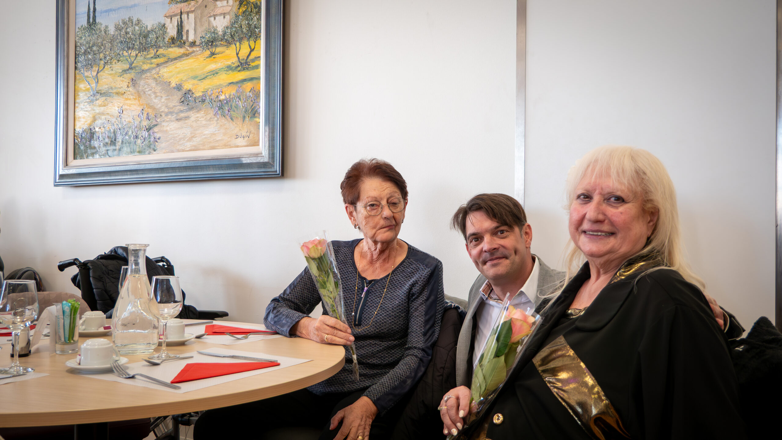 J’ai tenu à offrir pour l’occasion une rose à chacune des dames présentes en leur souhaitant de beaux jours à venir remplis d’amour et de douceur.