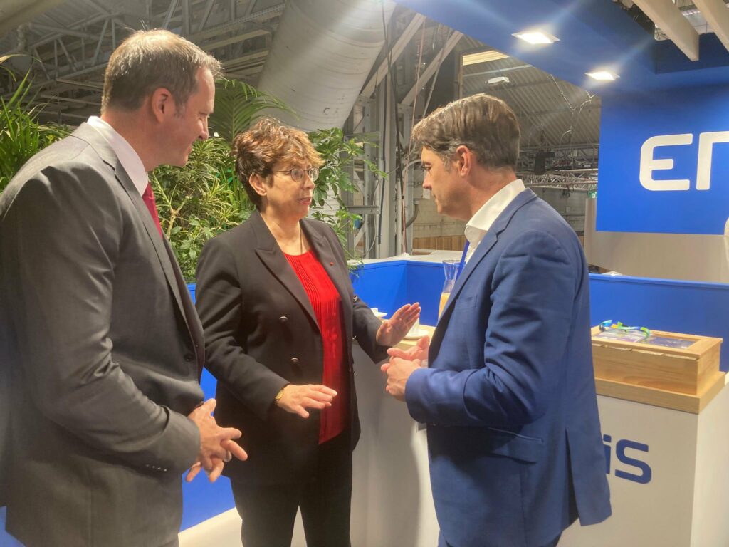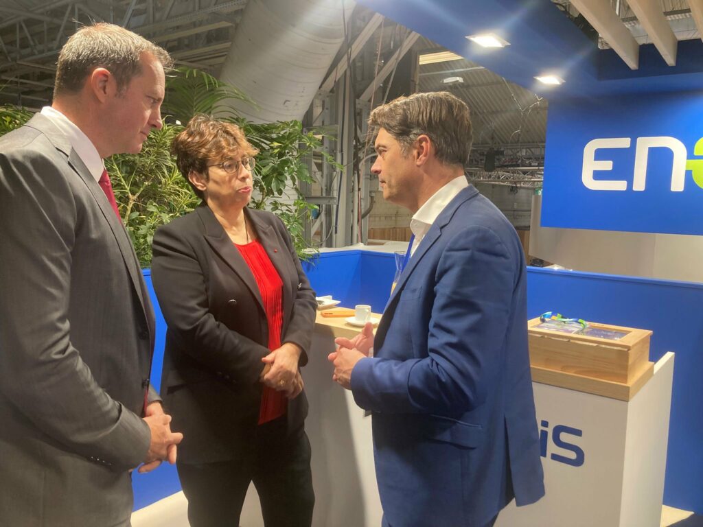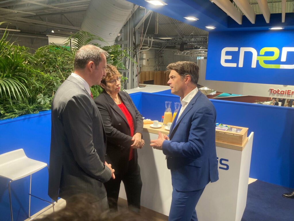 Ce déplacement a débuté par un moment fort : la signature de la nouvelle convention de partenariat entre l’ADM06 et Enedis, aux côtés de Marianne LAIGNEAU présidente du directoire d’Enedis, Xavier MONTUELLE directeur Enedis des Alpes Maritimes et Pierre CORPORANDY président des maires ruraux 06.