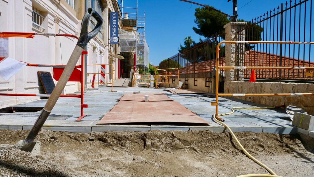 Les travaux actuellement en cours portent sur le traitement des sols et la mise à niveau des réseaux sous-jacents. Cette étape technique, essentielle, se déroule jusqu’à fin avril et mobilise les entreprises SEETP (VRD), MIDI TP (pose de pierres) et SUN METAL DESIGN (serrurerie).